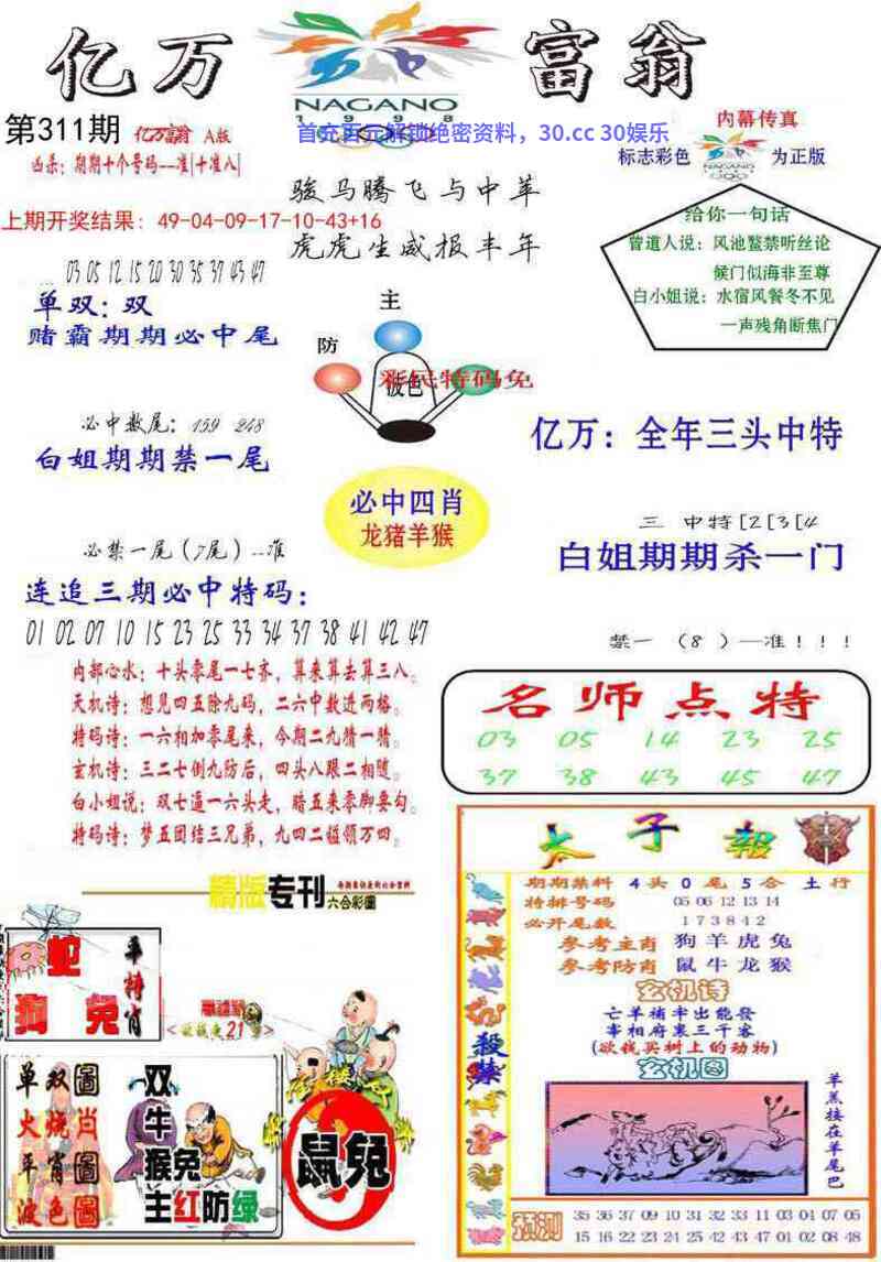 | 309期:绝杀二尾【1尾+3尾】开:鼠06中 |