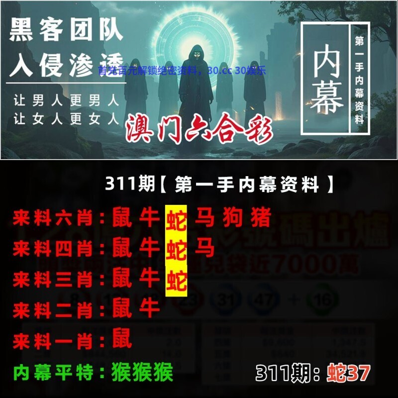 | 311期【绝杀十码】开:蛇37错 02.08.13.14.20.25.26.32.37.38 |